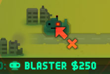 Click on the Blaster turret icon on the 'buildings' panel, at the bottom of the screen, to start 'build mode'.