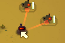 Turrets shoot automatically when in range. Hover over a turret to see it's range, shown by a red circle.